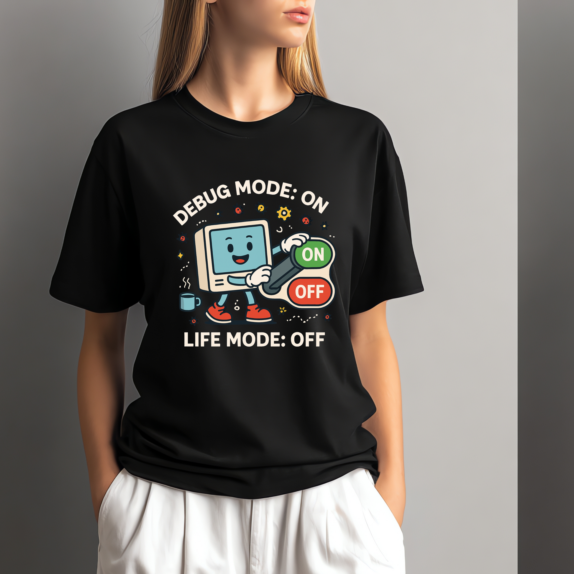 This “Debug Mode: On, Life Mode: Off” T-shirt is every developer’s mood perfectly captured in one hilarious design. With its playful retro-style computer graphic and vibrant colors, it’s a must-have for programmers, coders, and tech enthusiasts who live the debugging life.