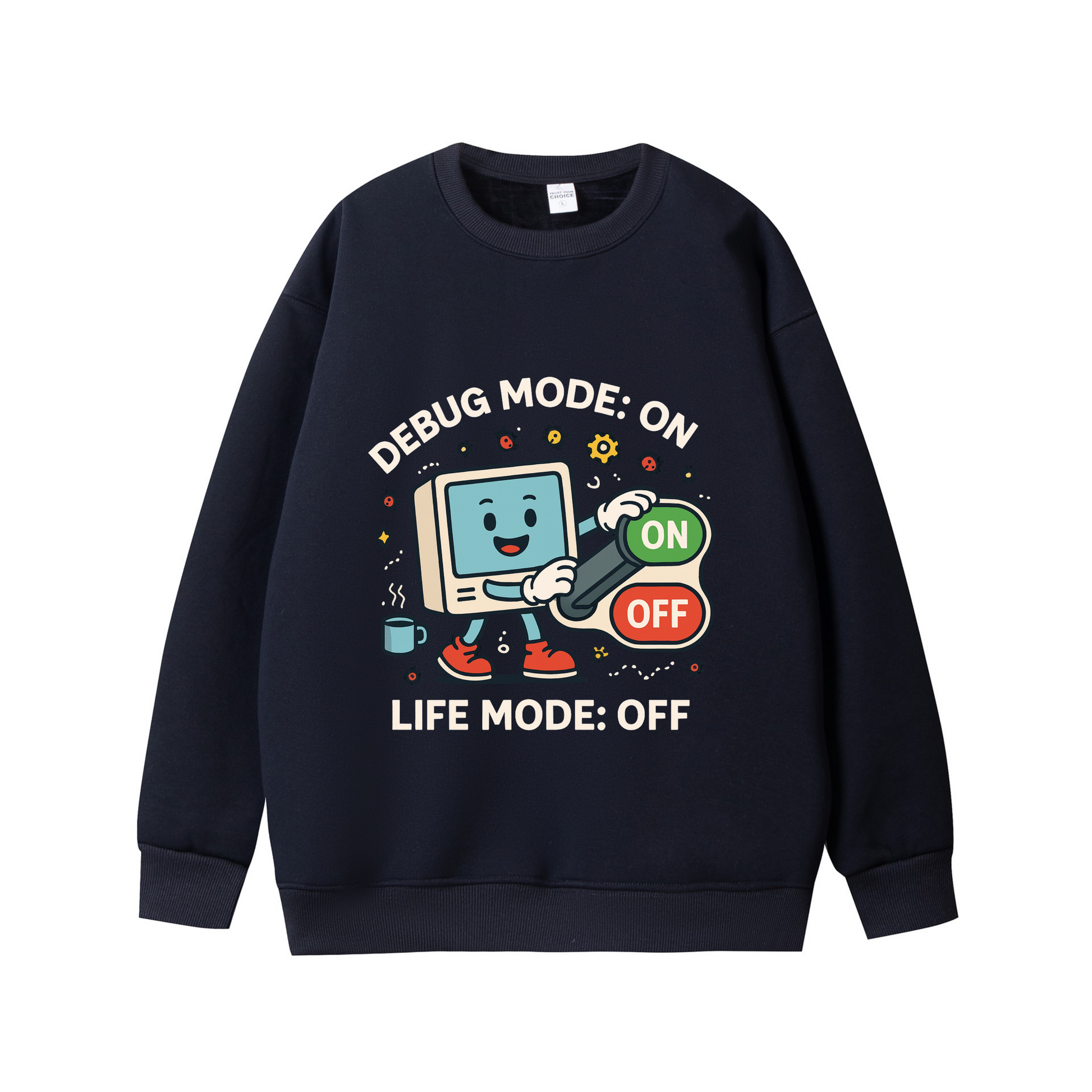 debug mode sweatshirt, life mode off jumper, programmer sweatshirt, coding hoodie, software engineer gift, funny tech sweatshirt, geek fashion sweater, unisex developer sweatshirt, computer lover gift, tech humor apparel